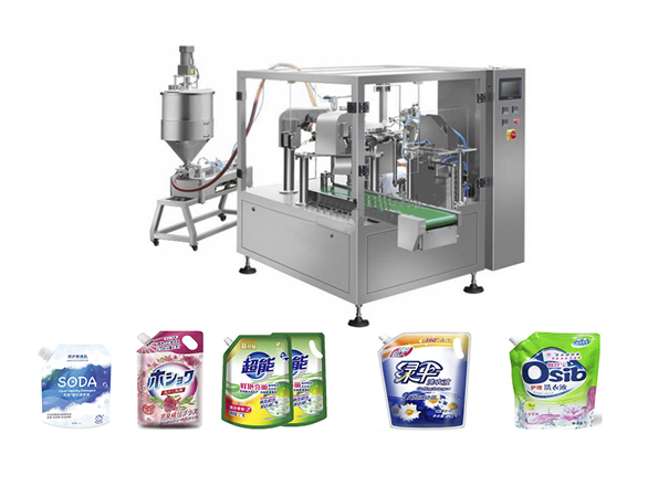 产品简介:全自动洗衣液灌装机,适用于袋装日化个护产品灌装。自立袋灌装旋盖机用于袋装可吸果冻,豆奶制品, 鲜奶, 酸奶,纯净水, 果汁, 冰淇淋,食用油,调味品,洗涤化工液料等产品灌装旋盖。