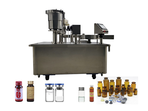 全自动灌装轧盖机适用于0.1-500g各种材质的圆形扁形塑料或玻璃瓶的粉剂灌装轧盖.本机由高精度凸轮分度机构提供分度等分盘定位上塞上盖;加速度凸轮传动提供旋盖头的升降;恒扭矩轧盖;高精蠕动泵式计量灌装;触摸屏控制.无瓶不灌装,不加内塞,外盖.具定位精确,传动平稳,保护瓶盖,计量准.操作简单等优点,完全符合国家GMP要求。